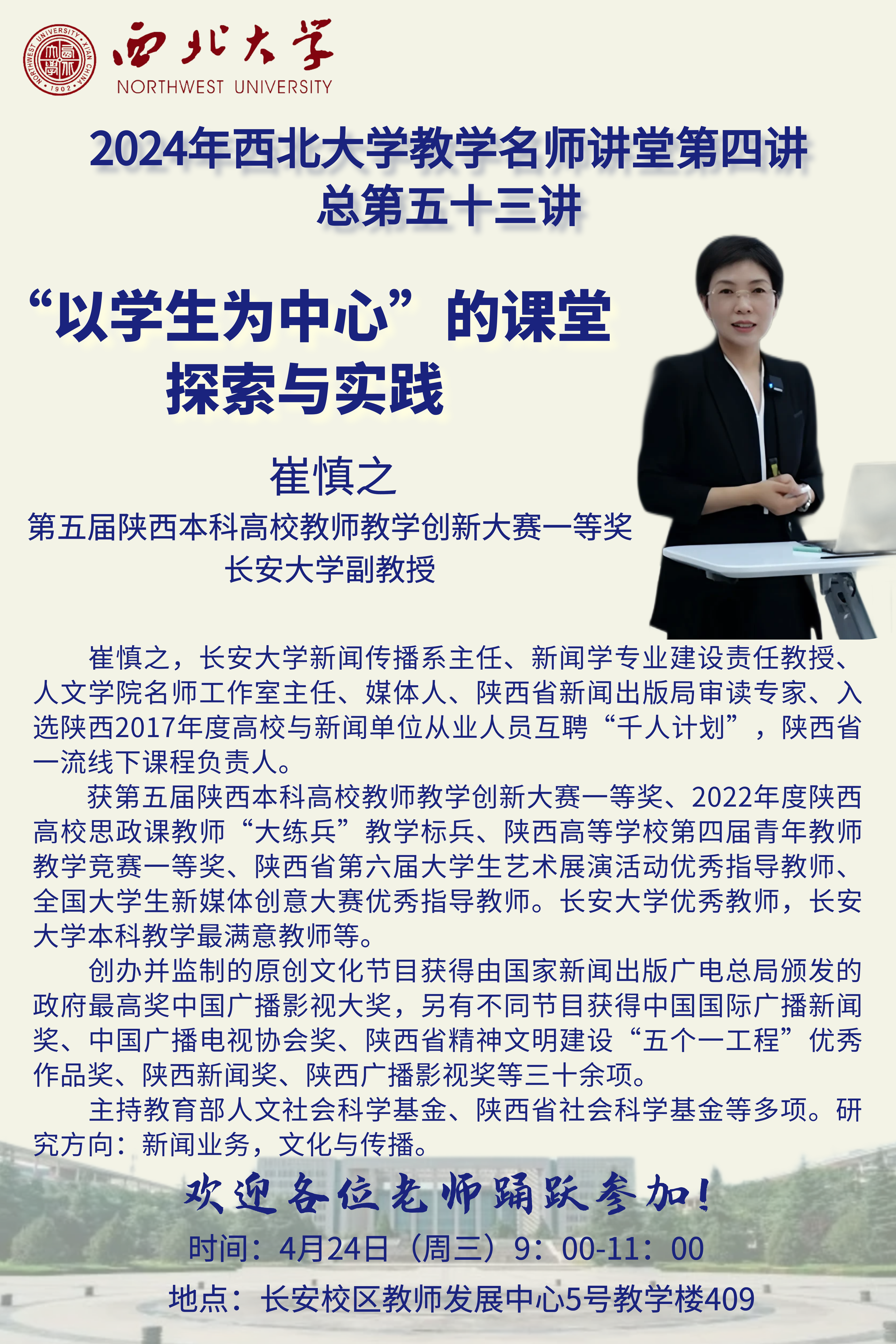 2024年开云手机网页版登录入口教学名师讲堂第四讲——“以学生为中心”的课堂探索与实践