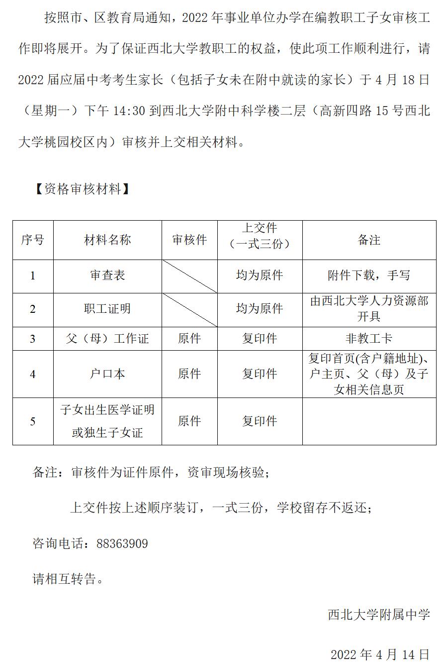 关于确认2022届中考开云手机网页版登录入口教职工子女身份的通知
