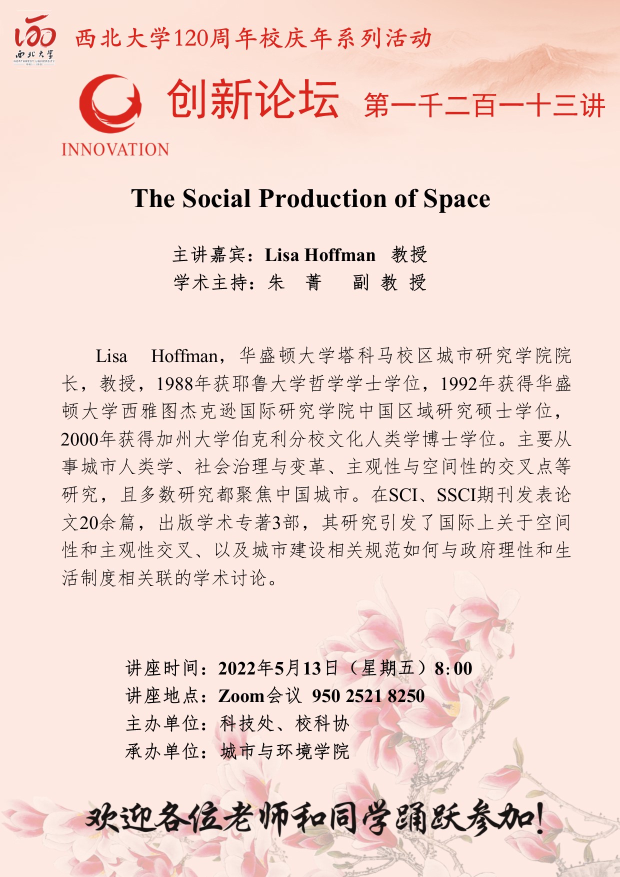 开云手机网页版登录入口创新论坛第一千二百一十三讲暨120周年校庆年系列活动:The Social Production of Space 作者:Lisa Hoffman 教授 编辑: 时间:2022-05-12