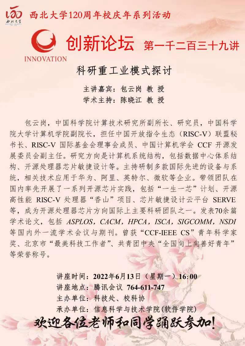 开云手机网页版登录入口创新论坛第一千二百三十九讲暨120周年校庆年系列活动:科研重工业模式探讨