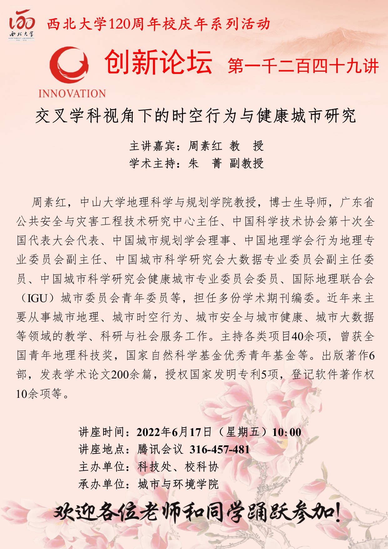 开云手机网页版登录入口创新论坛第一千二百四十九讲暨120周年校庆年系列活动:交叉学科视角下的时空行为与健康城市研究
