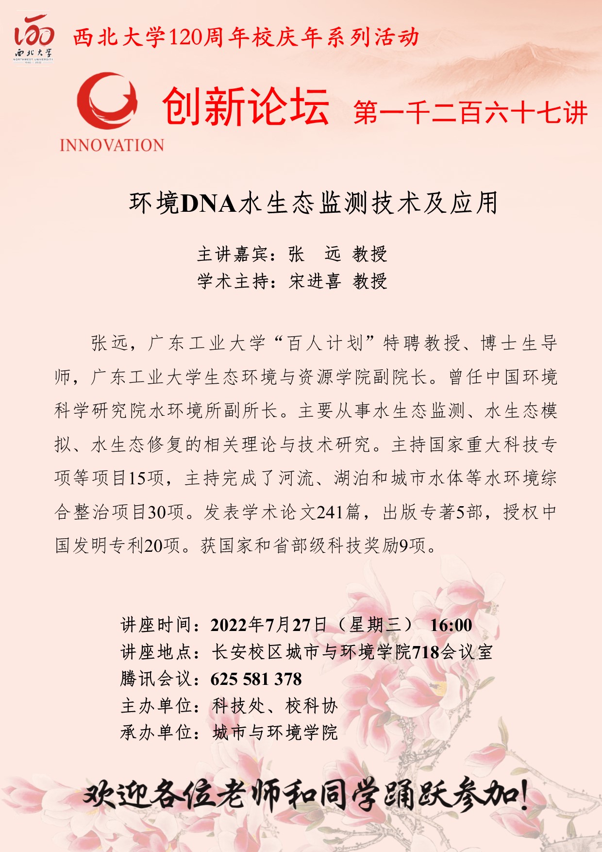 开云手机网页版登录入口创新论坛第一千二百六十七讲暨120周年校庆年系列活动:环境DNA水生态监测技术及应用