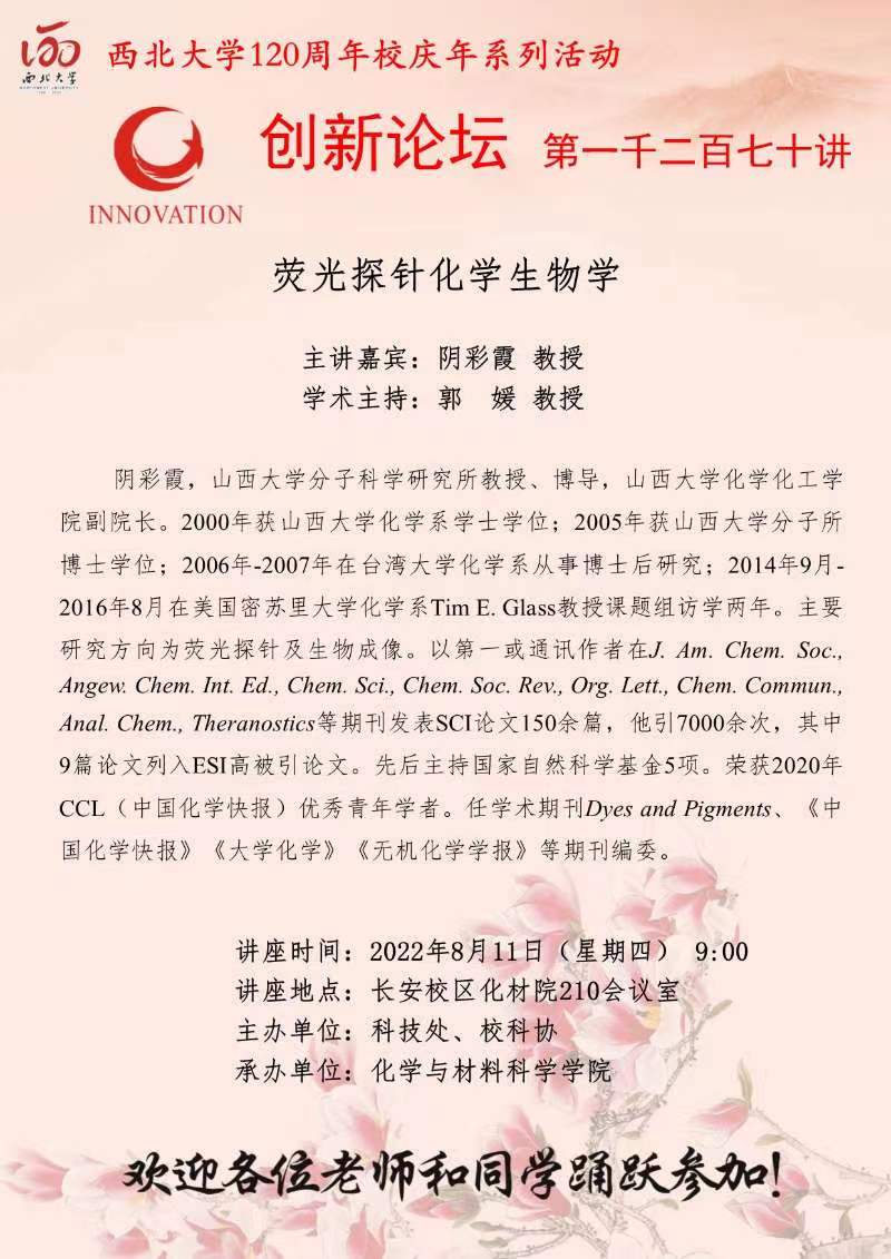 开云手机网页版登录入口创新论坛第一千二百六十九讲暨120周年校庆年系列活动:基于生物活性可视化的新药分子研究